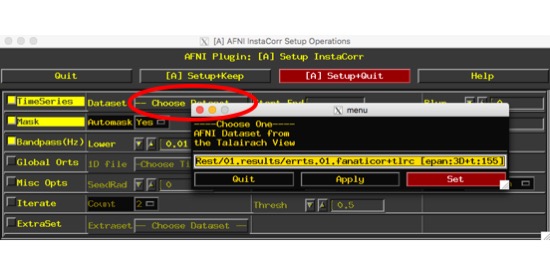 At this point, I use InstaCorr to check my data. (OK, there’s a lot more QA to be done, but this is the resting-state-analysis-specific stuff. afni_proc.py will generate a QA script to walk you through a lot of the rest, and I am by no means suggesting you skip that part. It’s important). If you ran the afni_proc.py script above (and the resulting script), you’ll have a $sid.results folder than includes anat.final and errts.$sid.fanaticor. Load those up into afni.
