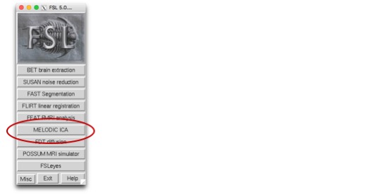 To do an ICA, we’re going to use the FSL tool melodic. We’re going to give melodic the data that we cleaned up earlier using AFNI. You can use melodic on the command line or the gui. First we’ll walk through the gui.