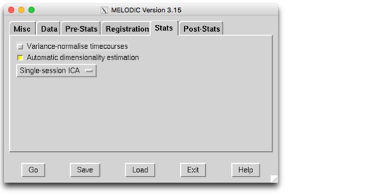 Automatic dimensionality estimation : Here, you can choose how many components you want, or you can let Melodic choose for you based on the variance explained. Generally, I start with automatic detection, look at the output plot, and may run it again choosing the dimensions myself later. Normally, it’s fine to do the automatic. But sometimes, you end up with 400 components or something, and it’s just not so useful anymore.