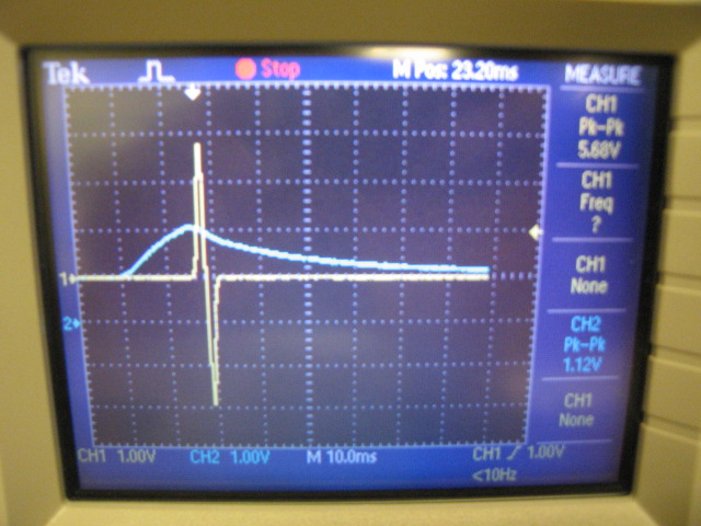I only had access to a two channel oscilloscope so I had to look at two of the three signals at a time. Here is the “actual” timing of audio (Yellow) and video (Blue):