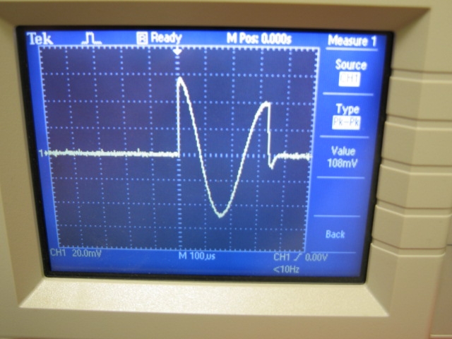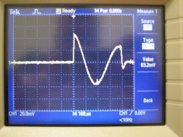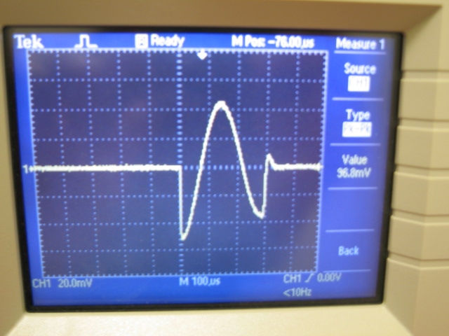 with the Magstim, at 70% 75 ms IPI was the minimum to prevent decrease amplitude at 90%, 115 ms was the minimum The Magstim will not trigger if the cap is not fully charged; Nafi’s stimulator does not have that circuitry. On the scope, both waveforms looked similar, roughly triphasic: large sharp positive, medium negative, small third positive peak. Nafi’s pulse was a little noisier and longer (400 us vs. 350 us).