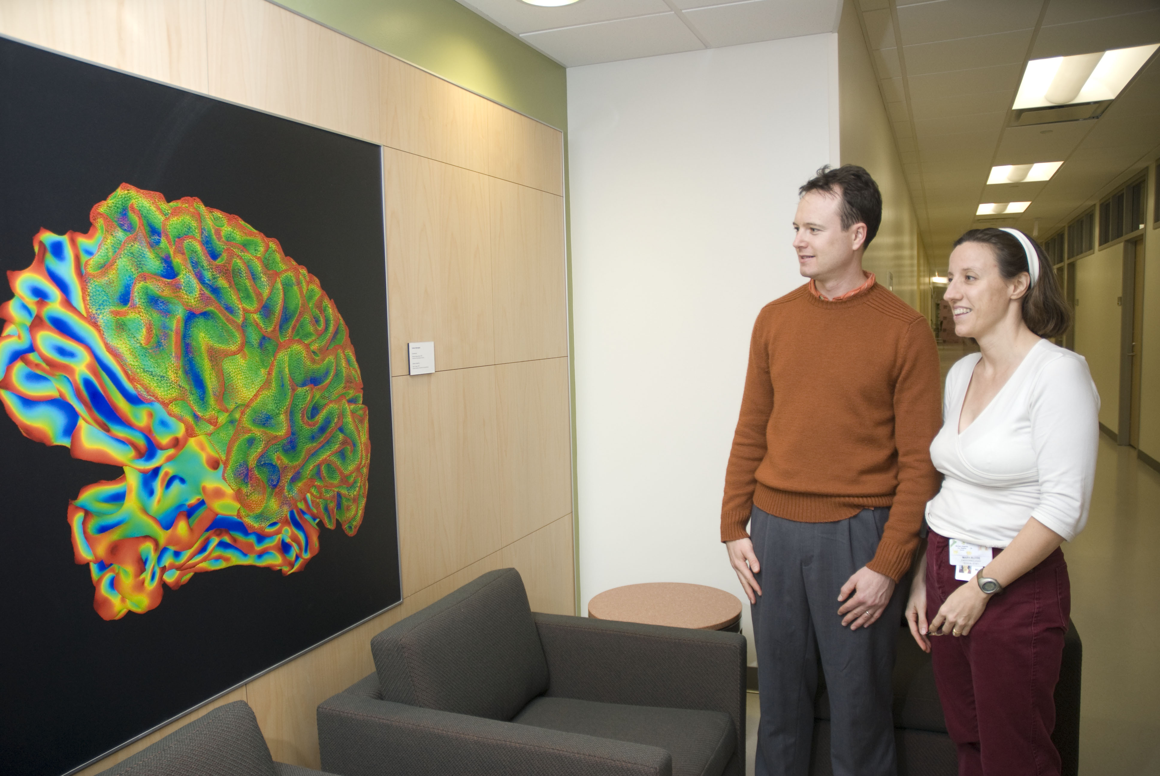 The human brain is one of the most complex biological machines, containing billions of neurons and trillions of synapses. The Beauchamp Lab studies the living human brain using a variety of techniques. The main technique is blood-oxygen level dependent functional magnetic resonance imaging (BOLD fMRI). The primary research interest of the laboratory is multisensory integration. While vision is our most important sensory modality (taking up about a quarter of our brain’s real estate) other sensory modalities are also important. For instance, even if we cannot see our mobile phone blinking, we can hear its ring or feel its vibration in our pocket. These different modalities are encoded by our brain in very different ways. The auditory system is most concerned with the frequency (high or low-pitched sounds), as is the tactile system (slow stroking vs. quick vibrations). In contrast, our visual system is organized by the spatial location of stimuli–a stroke may damage our ability to see objects on the left side of the room but not the right side. Although each sensory modality is organized fundamentally differently, our brain must integrate the information provided by the different modalities in order to make decisions. For instance, is the phone ringing or not? Our research has shown that regions of superior temporal sulcus are especially important for this process of multisensory integration. In superior temporal sulcus, different sensory inputs converge into patches of cortex, allowing multisensory integration to occur. Because BOLD fMRI offers only an indirect measure of neuronal activity, it is important to combine fMRI with other measures of brain function. In particular, we combine fMRI with electrical and magnetic stimulation and recording of brain activity. Patients with intractable epilepsy are frequently implanted with subdural electrodes. While implanted with the electrodes, these patients may consent to participate in our experiments. fMRI is performed implantation to localize the functional areas under the electrode. We have demonstrated that stimulating an electrode located over a brain areas sensitive to color (as shown with fMRI and local field potential recording) produces the percept of a color that matched the color that evoked the strongest response, a blue-purple hue. This demonstrates a close correspondence between neuronal selectivity and perception. Using transcranial magnetic stimulation (TMS) in combination with fMRI allows us to explore the effect of interfering with activity in specific brain areas on perception in normal human subjects.