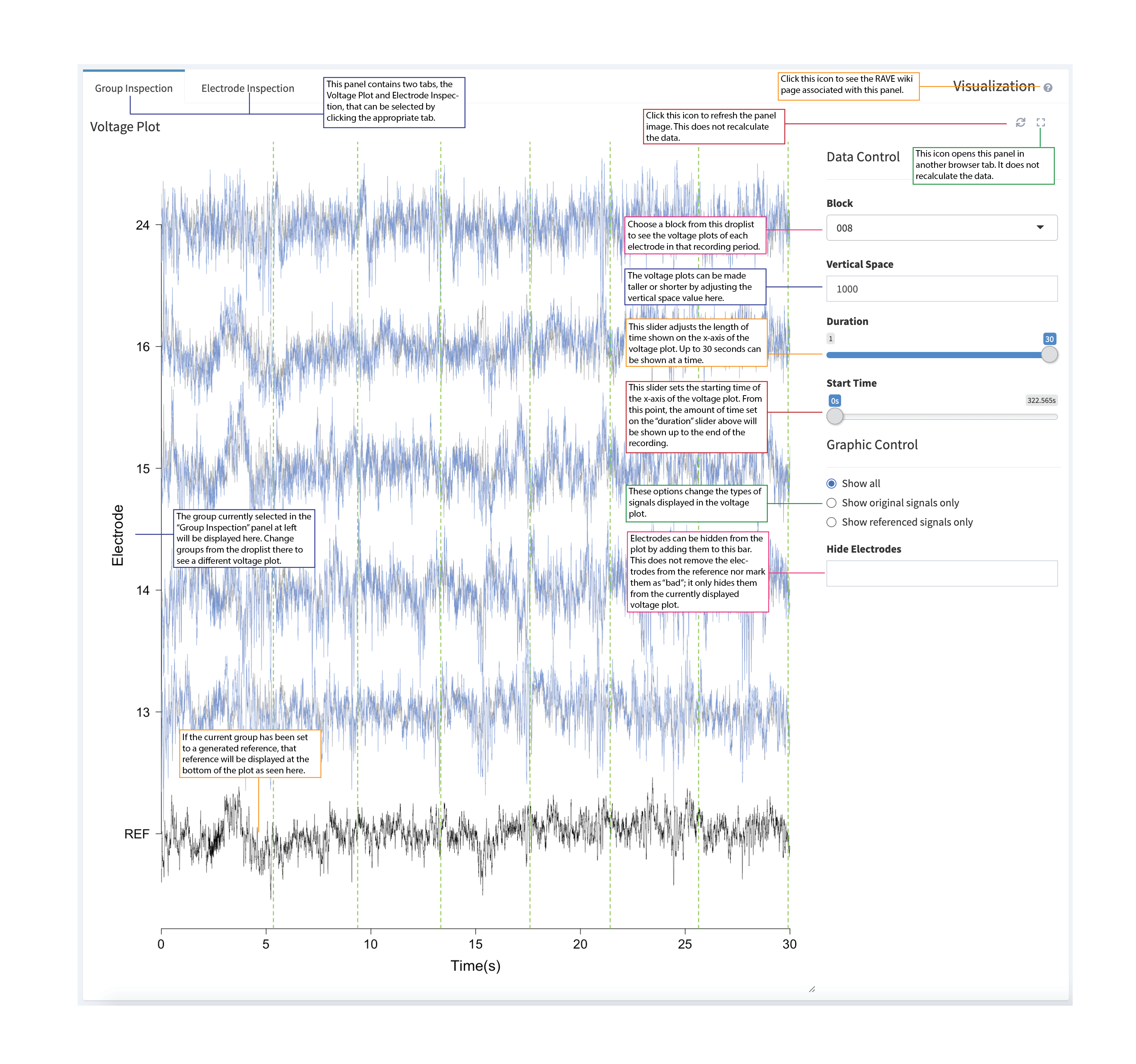 Description of the output for the reference module. First is the Group Inspection tab, scroll down to see details for the Electrode Inspection tab.